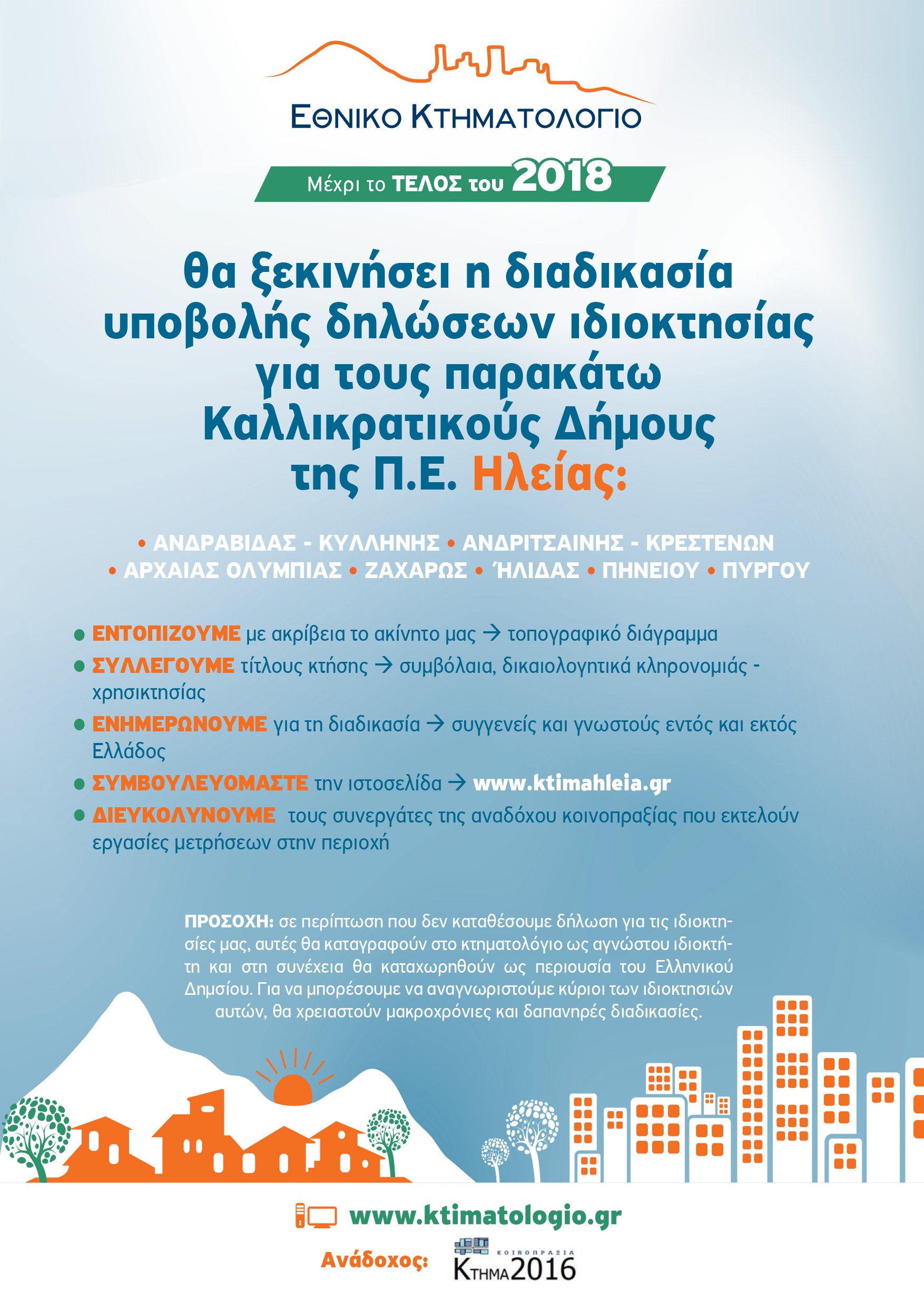 «Η Ηλεία στο Εθνικό Κτηματολόγιο, Ενημερωνόμαστε Συμμετέχουμε»